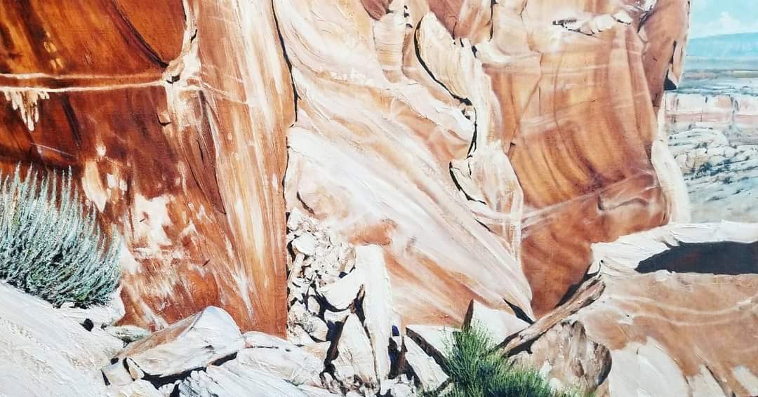 My oil painting, Procession Panel, is a testament to the contemporary issues that face our state works of art when they still reside in their original location. There’s the threat and reality of defacement, the question of how to protect them, and what the best way to provide that protection is. The issues that the Bears Ears National Monument has raised have garnered the attention of the nation. I stumbled upon the panel hiking one day by accident and couldn’t believe my eyes. I took out my camera and documented the panel then and there, and spent the next year painting the scene as I saw it that day. My goal has been to paint a creative preservation of this panel for future generations―or at least the preservation of a moment in Utah when a hiker could still stumble upon a pristine Procession Panel by accident.