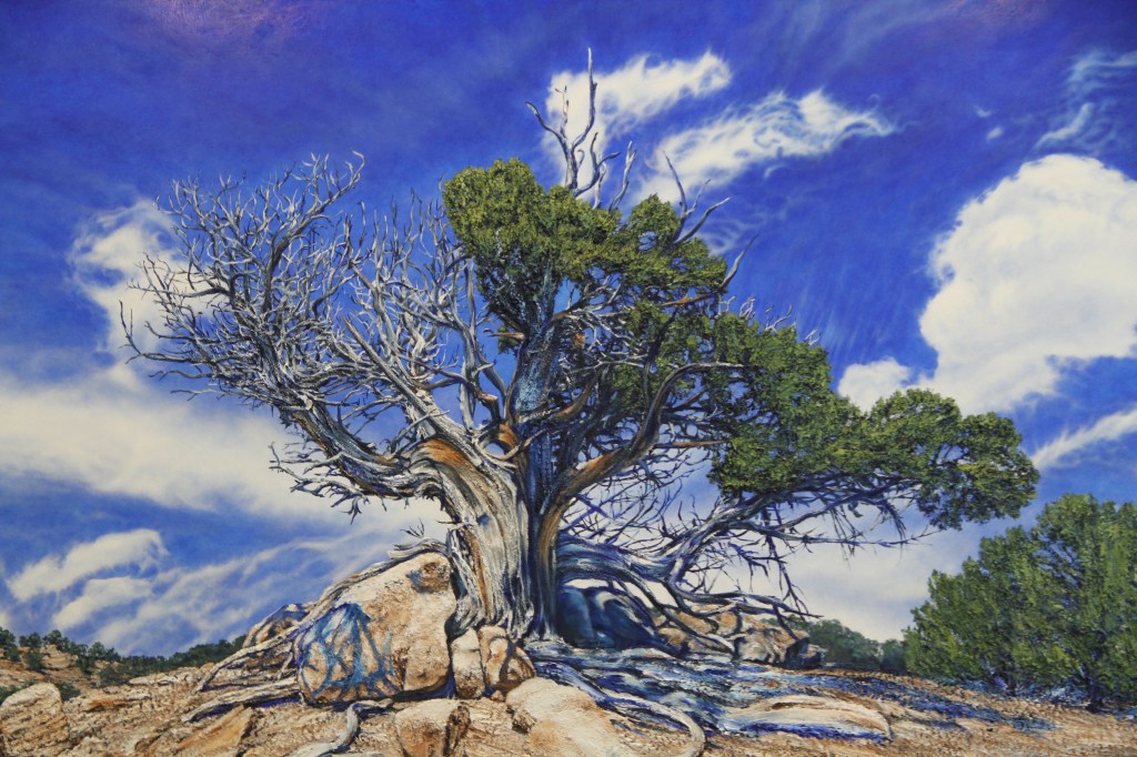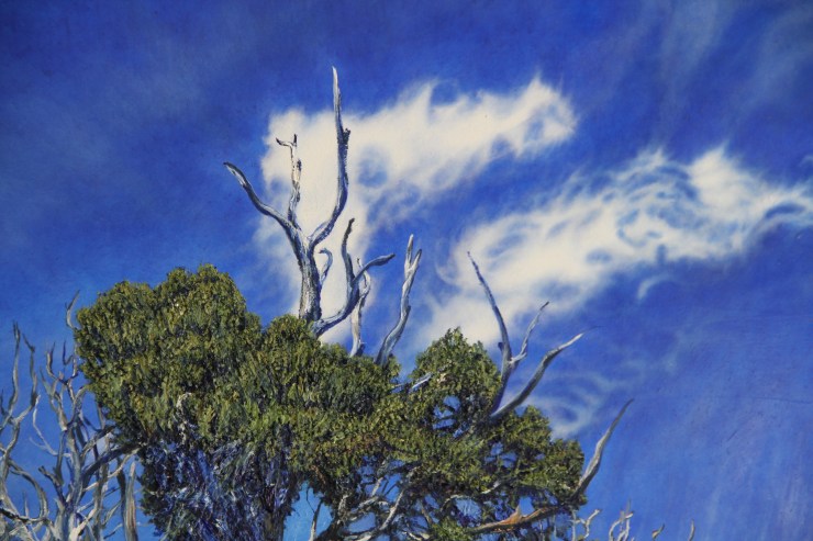 When I started this painting I had no idea that I could find so much depth in a blue sky. It’s endless— just how it should be. Seems to me that junipers are forever twisting and reaching upwards to the sky, caught in a kind of perpetual longing. For me that’s what life is, a sense of longing for something we can never quite find but never give up searching for.